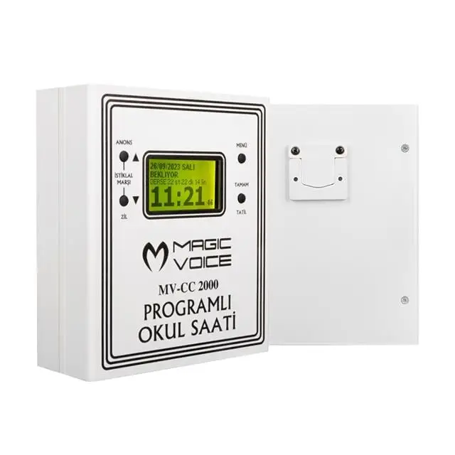 Magicvoice MV-CC2000 USB Duvar Tipi Programlı 20 Adet MP3 Formatı Zil / İstiklal Marşlı Akıllı Dijital Okul Saati (Çan Takılabilir)