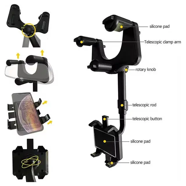 PowerMaster PM-25159 Araç İçi Dikiz Aynası Telefon Tutucu 360 Derece Ayarlanabilen