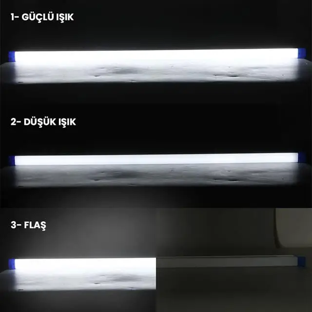 3 Mod (Güçlü Işık, Düşük Işık, Flaş/SOS)