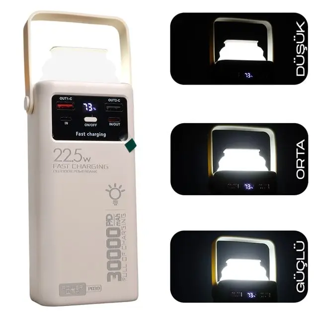 Powerway PD30 30.000mAh 22.5W PD & QC 3.0 Hızlı Şarj Destekli Dijital Göstergeli Powerbank