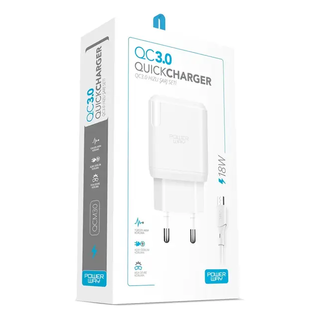 Powerway QCM30 18W Hızlı Şarj Adaptörü + Micro USB Kablo Seti