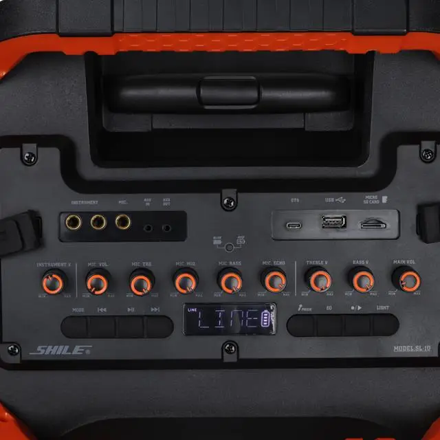 Shile SL-10 120 Watt Taşınabilir Seyyar Amfi Hoparlör Kablosuz 1 EL + 1 Yaka Mikrofonlu Kumandalı USB+SD+BT