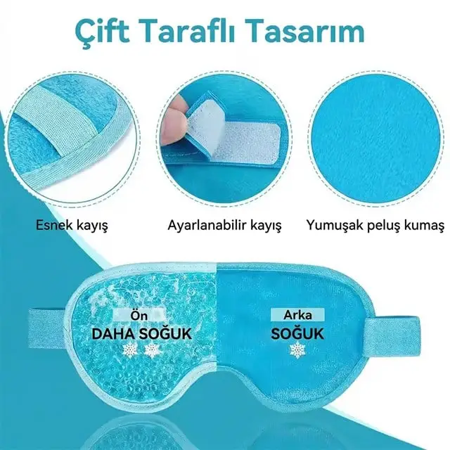 | Çift Taraflı Kullanım Avantajı | Maskenin ön yüzü, ısıyı veya soğuğu hızla ileten lateks içermeyen yüksek kaliteli PVC materyalden oluşur. Arka yüzü ise cilde dost, süper yumuşak pelüş kumaş ile kaplanmıştır. Hassas bir cildiniz varsa veya ısının doğrudan etkisinden çekiniyorsanız pelüş tarafı kullanabilir, daha yoğun bir etki istiyorsanız PVC tarafı tercih edebilirsiniz. |