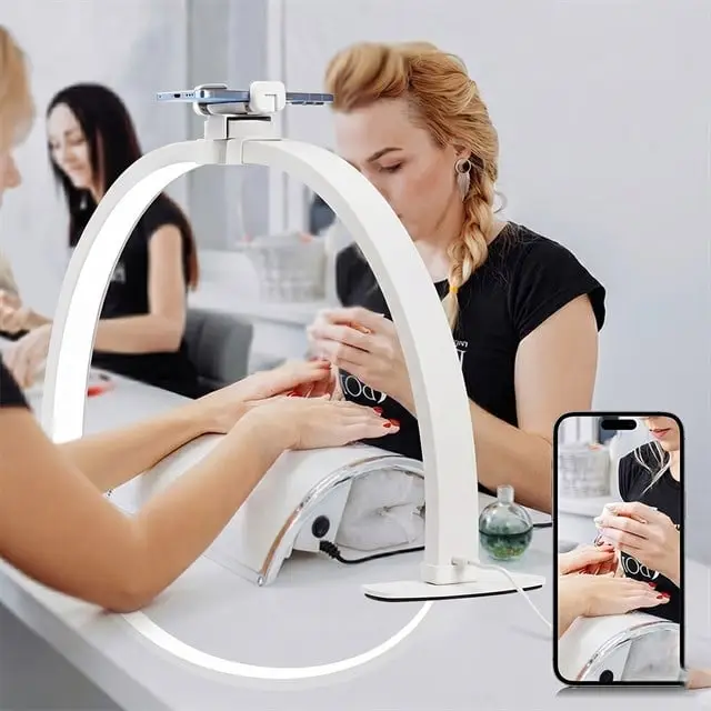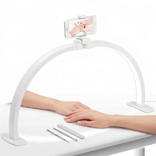 TrLed F-550A Beyaz 55cm Katlanabilir Yarım Ay Protez Tırnak ve Güzellik Uzmanı Masa Lambası Beyaz