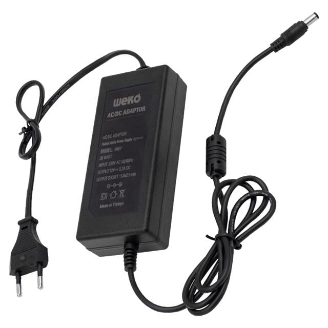 WEKO 12 VOLT - 3.2 AMPER - 38 WATT 5.5*2.5 UÇLU YERLİ ÜRETİM PLASTİK KASA MASAÜSTÜ ADAPTÖR