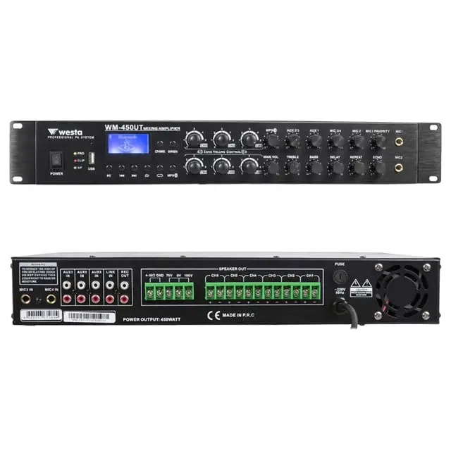 Westa WM-450UT 450W 6 Bölge Kontrollü Profesyonel Mikser Anfi Bluetooth, USB ve Eko Destekli Hat Trafolu Güç Ünitesi