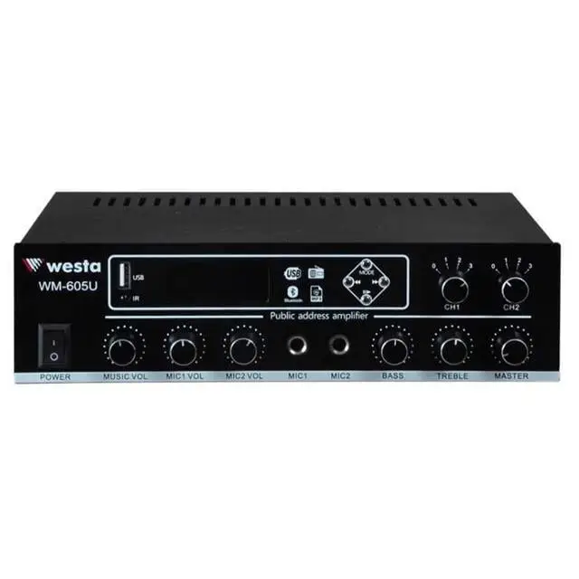 Westa WM-605U USB-Bluetooth 2 Bölgeli 2 Mikrofon Girişli 100 Watt Trafolu Anfi