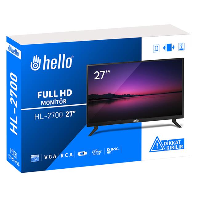HELLO HL-2700 27 AUDIO IN-RCA-VGA-HDMI-USB 12 VOLT ADAPTÖRLÜ FULL HD LED MONİTÖR