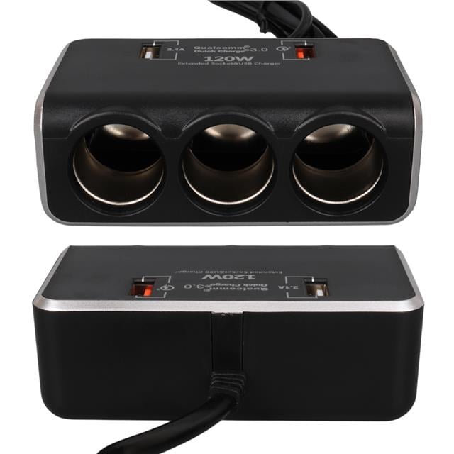 Olesson 1639 12-24V Çift USB Girişli Hızlı Şarj Destekli 120W 80cm Kablolu Dijital Voltaj Ekranlı 3'lü Araç Çakmak Çoklayıcı
