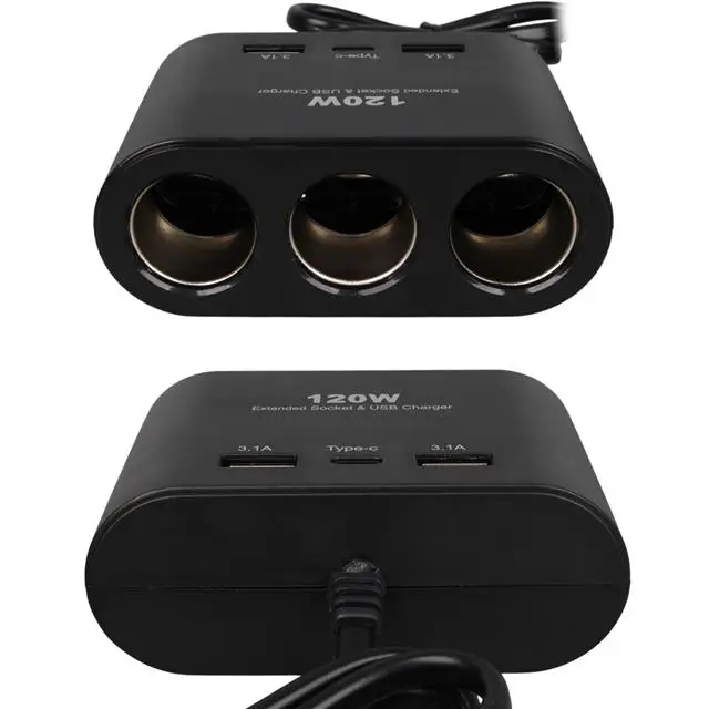 Olesson 1653 12-24V Çift USB + TYPE-C Girişli 100W 70cm Kablolu 3'lü Araç Çakmak Çoklayıcı