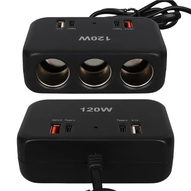 Olesson 1656 12-24V Çift USB + Çift TYPE-C 120W 80cm Kablolu 3'lü Araç Çakmak Çoklayıcı
