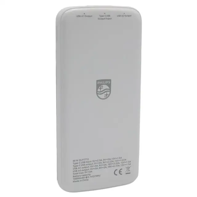 Philips DLP7712CB 10.000mAh PD Hızlı Şarj Dijital Ekranlı Beyaz Powerbank