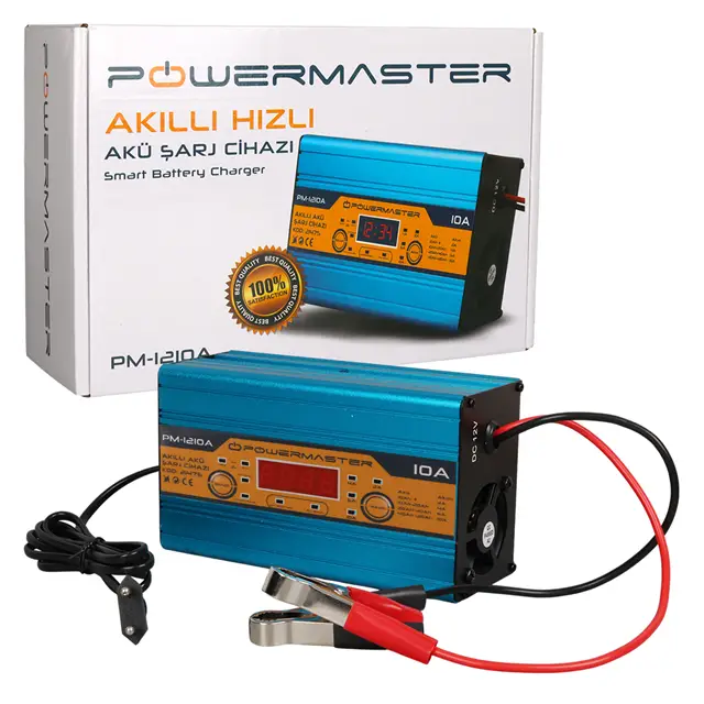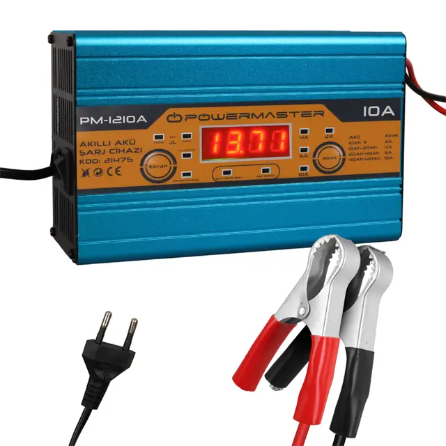 Powermaster PM-1210A 12 Volt Max 10 Amper LCD Ekranlı Akıllı Akü Şarj Cihazı