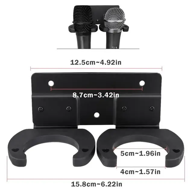PowerMaster PM-26938 Duvara Monte Çift Mikrofon Tutucu Askı Metal Gövde