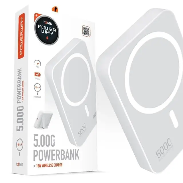 Powerway 5.000mAh PD15W Magsafe Kablosuz Wireless Taşınabilir Şarj Cihazı Beyaz Powerbank TXM5