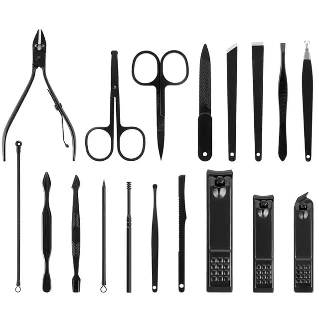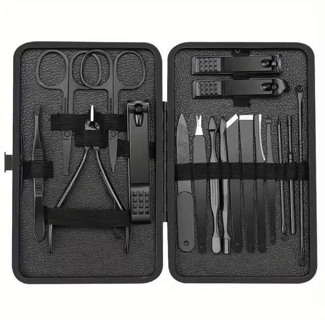 Sunup SN-27099 Siyah Paslanmaz Çelik 18in1 Profesyonel Manikür Tırnak Bakım Seti