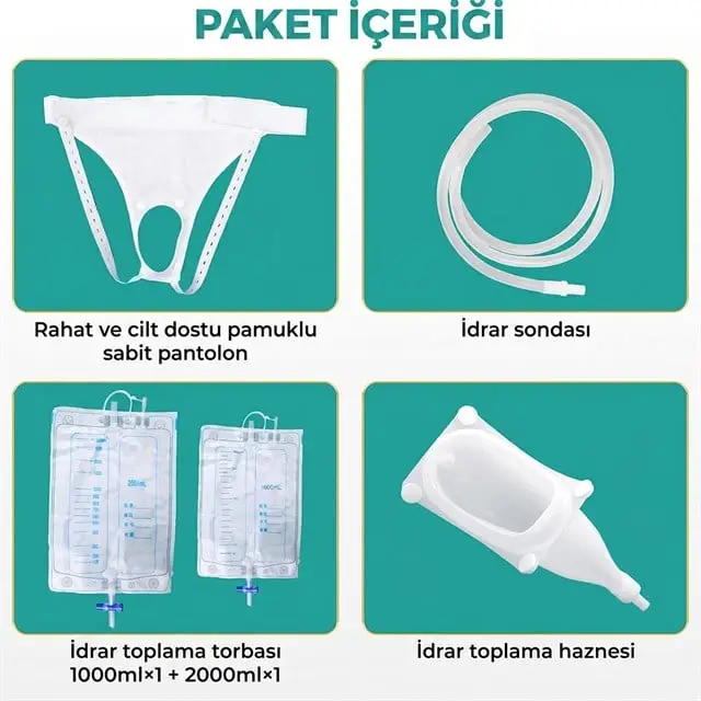 | Özellik 4 | 1 Adet 2000ml İdrar Toplama Torbası, 1 Adet 2000ml Yüksek Kapasiteli Gece Drenaj Torbası |