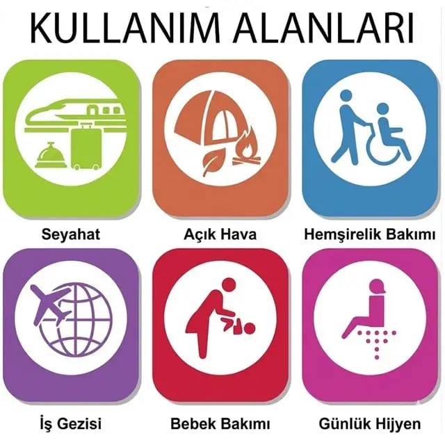 | Her Yerde Hijyen Sağlar | Seyahat, kamp, karavan ve otel gibi taharet musluğu olmayan alanlarda pratik çözüm sunar. |