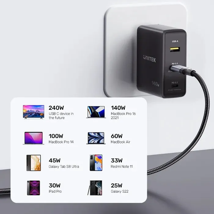 UNITEK TYPE-C HIZLI ŞARJ 2MT 240W (C14110GY-2M)